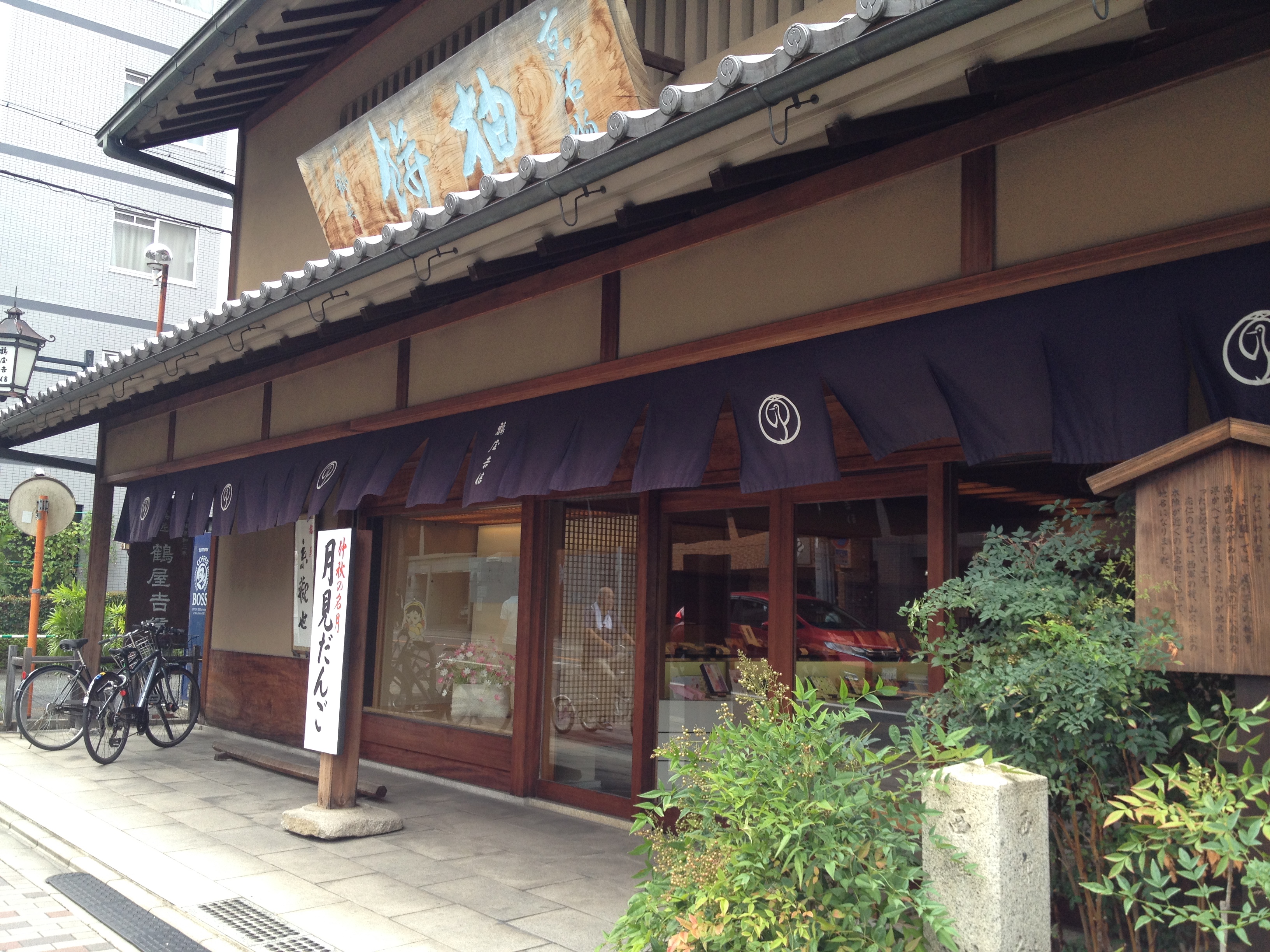 October 14, 2019 職人.com總公司所在的大街,稱為堀川通,與日本茶道表千里家隔街遙望。 職人.com總公司所在的大街,稱為堀川通,與日本茶道表千里家隔街遙望。 沿著堀川通一路向北就是禪寺名剎的大德寺,就是眾所周知的一休哥復興的寺廟,更是日本室町時代禪宗塔頭,枯山水庭院的集大成寺院建築所在。 向南有,平安時代陰陽師安倍晴明的晴明神社,處處鐫刻閃耀著五芒星紋。 再往南就是江戶德川幕府的二條城,大政奉還等歷史事件見證地,也是日本狩野派江戶時期金碧障壁畫大作存留地,對日本建築,空間裝飾等有興趣的朋友,必遊覽之地。而最近二條城也成了日本當代藝術集結展示的空間,深有古今對話的觀感。此外堀川通兩側的西陣織,就不贅言了。 因此沿著堀川通,匯聚了京都名和菓子店,每一家堪稱自成一格。 今日先推薦與職人.com比鄰相距的,鶴屋吉信,創業於1803年,店頭看板“柚餅”墨跡出於文人畫家·富岡鉄斎畫伯之手。一層是店鋪,二層是茶室,茶庭等休憩空間。 職人.com今出川展賣店鋪 https://www.shokunin.com/zh/showroom/imadegawa.html