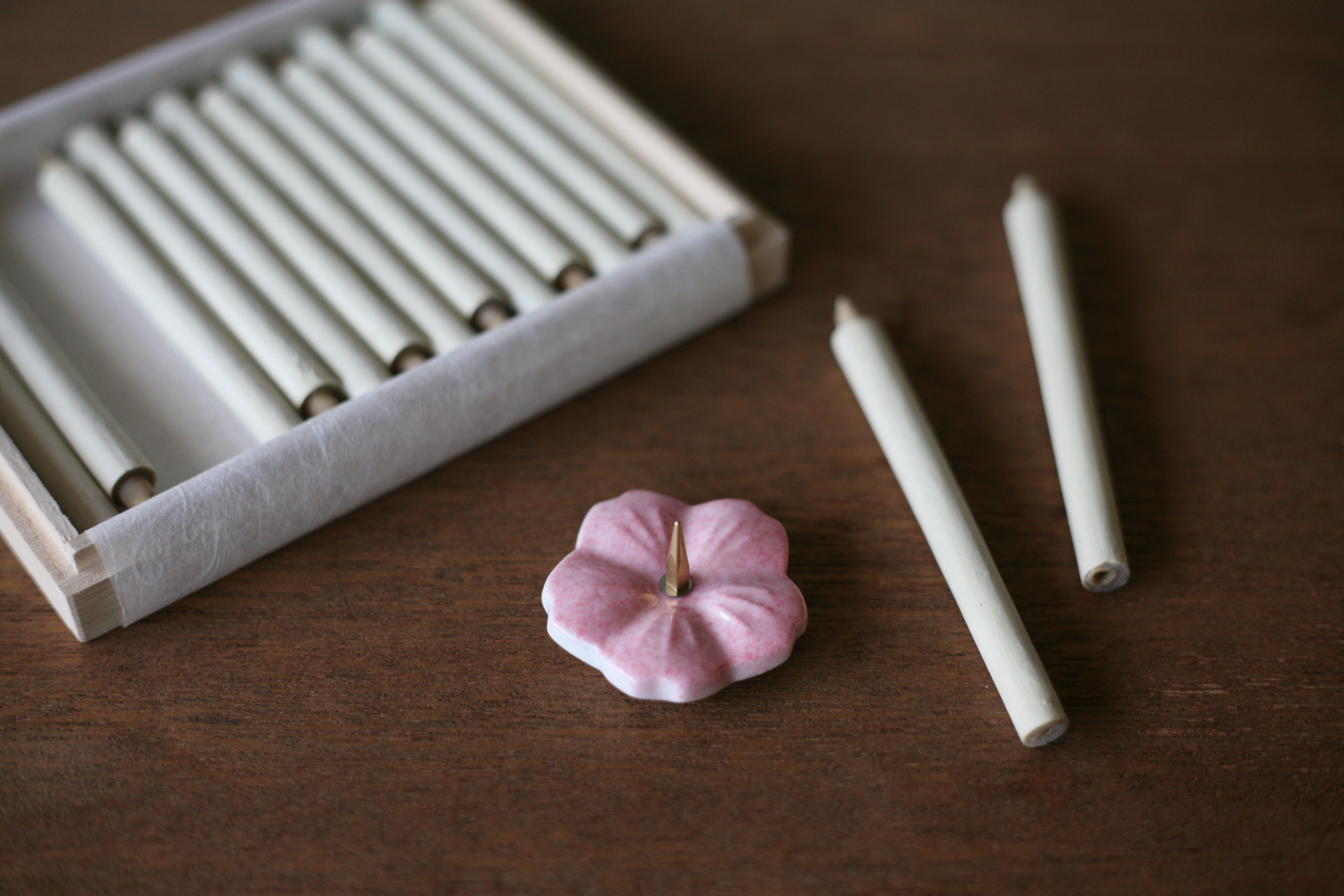 October 27, 2021 自上週末一場飄飄灑灑的秋雨後,京都的氣溫一天一天地降到了瑟瑟秋日寒。的確增添了早出晚歸亂穿衣的不便,但內心反而切切期待紅葉季的到來。 自上週末一場飄飄灑灑的秋雨後,京都的氣溫一天一天地降到了瑟瑟秋日寒。的確增添了早出晚歸亂穿衣的不便,但內心反而切切期待紅葉季的到來。在紅葉季之前亦有長長秋季漫漫秋夜的樂趣,例如清少納言筆下的『四季之美』(林文月先生譯本):「秋則黃昏。夕陽照耀,近映山際,烏鴉反巢,三隻,四隻,兩隻地飛過,平添感傷。又有時見雁群小小,列隊飛過遠空,尤饒風情。而況,日入以後,尚有風聲蟲鳴。」如此初秋之際,臨睡前案前點燃一支和蠟燭,信手翻弄幾頁清少納言『枕草子』,可消永夜。 蠟燭據說是隨著佛教傳入日本,當時是收集蜂巢中蜂蠟製作而成的。而和蠟燭據說是在室町時代用從黃櫨果實中提取出的木蠟融化加工而成。此外目前位於京都南部的「さすてな京都」傳統文化體驗館,不定期舉辦和蠟燭製作體驗活動。此後大家若來京都觀光屆時即可查閱詳情,嘗試一番和蠟燭的製作流程。 中村蠟燭的木蠟棒型 https://www.shokunin.com/zh/nakamura/mokurobogata.html 中村蠟燭的鮮花蠟燭 https://www.shokunin.com/zh/nakamura/erousoku.html 參考資料 https://sustaina-kyoto.jp